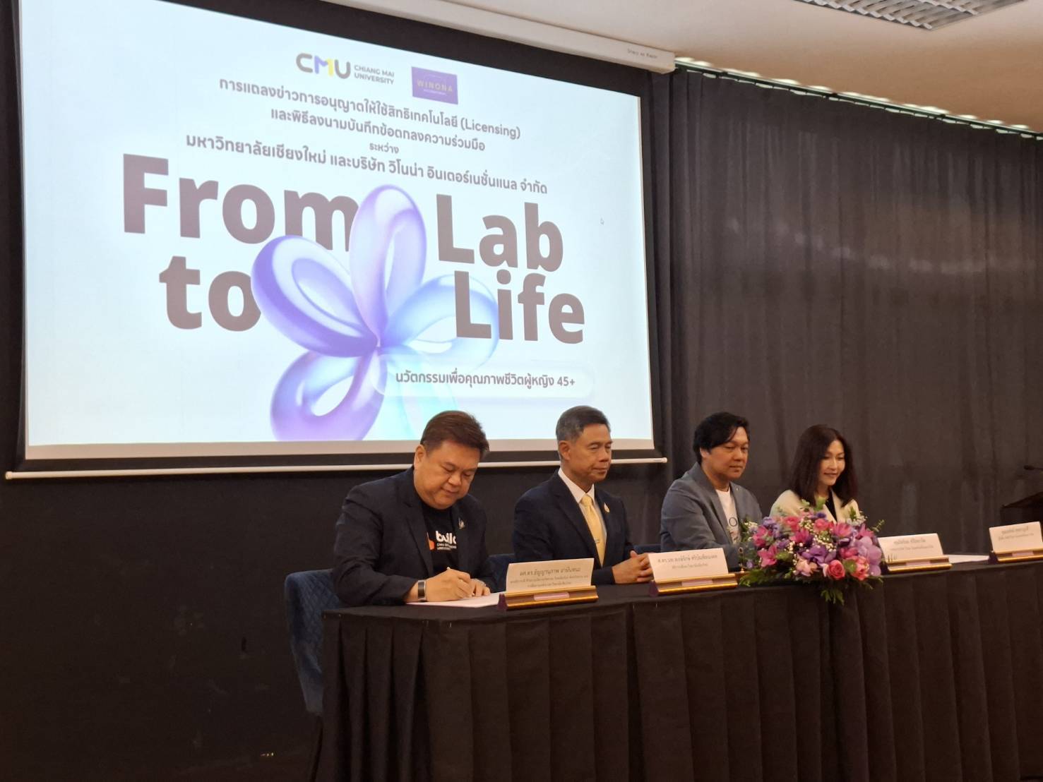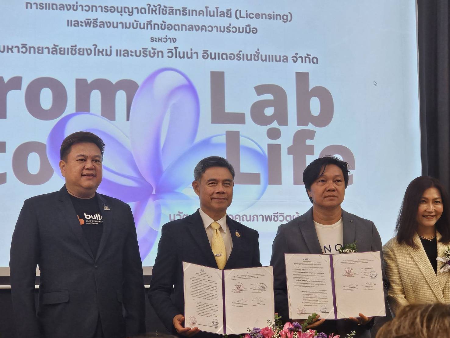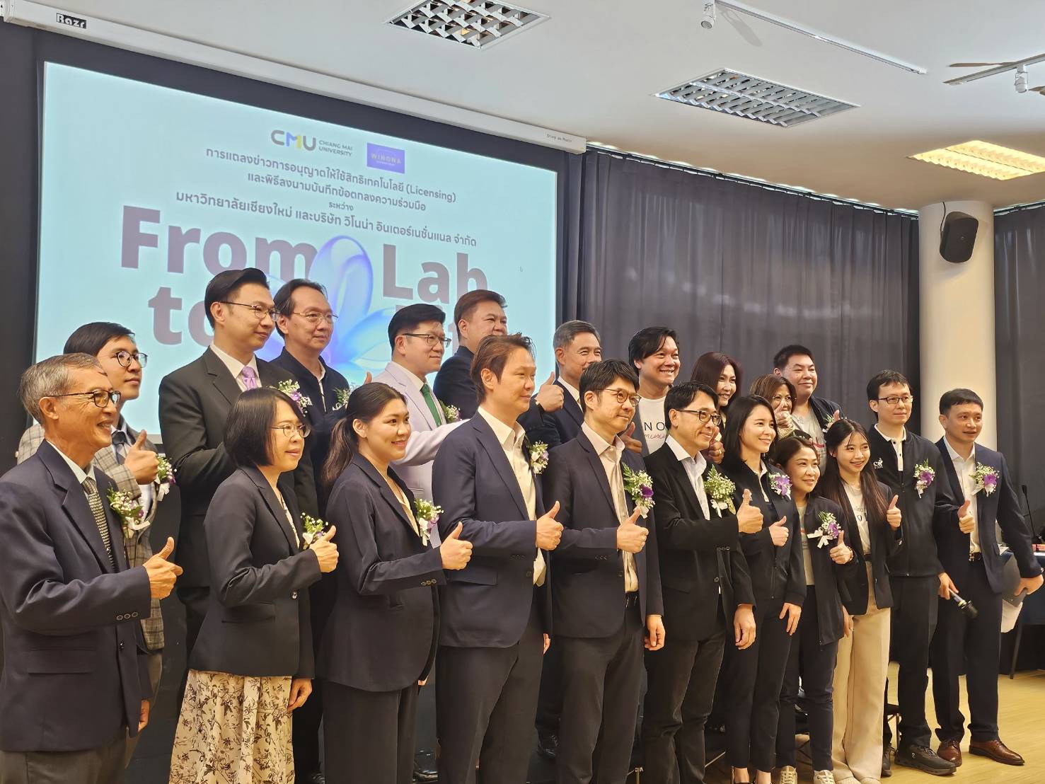 Prof. Pongruk Sribanditmongkol, M.D., Ph.D., President of Chiang Mai University, together withAsst. Prof. Tanyanuparb Anantana, Ph.D., Vice President and the University’s executive team, welcomed Winona International Co., Ltd. on the occasion of their visit to Chiang Mai University and the signing ceremony of a"Memorandum of Understanding on Licensing" for two technologies.