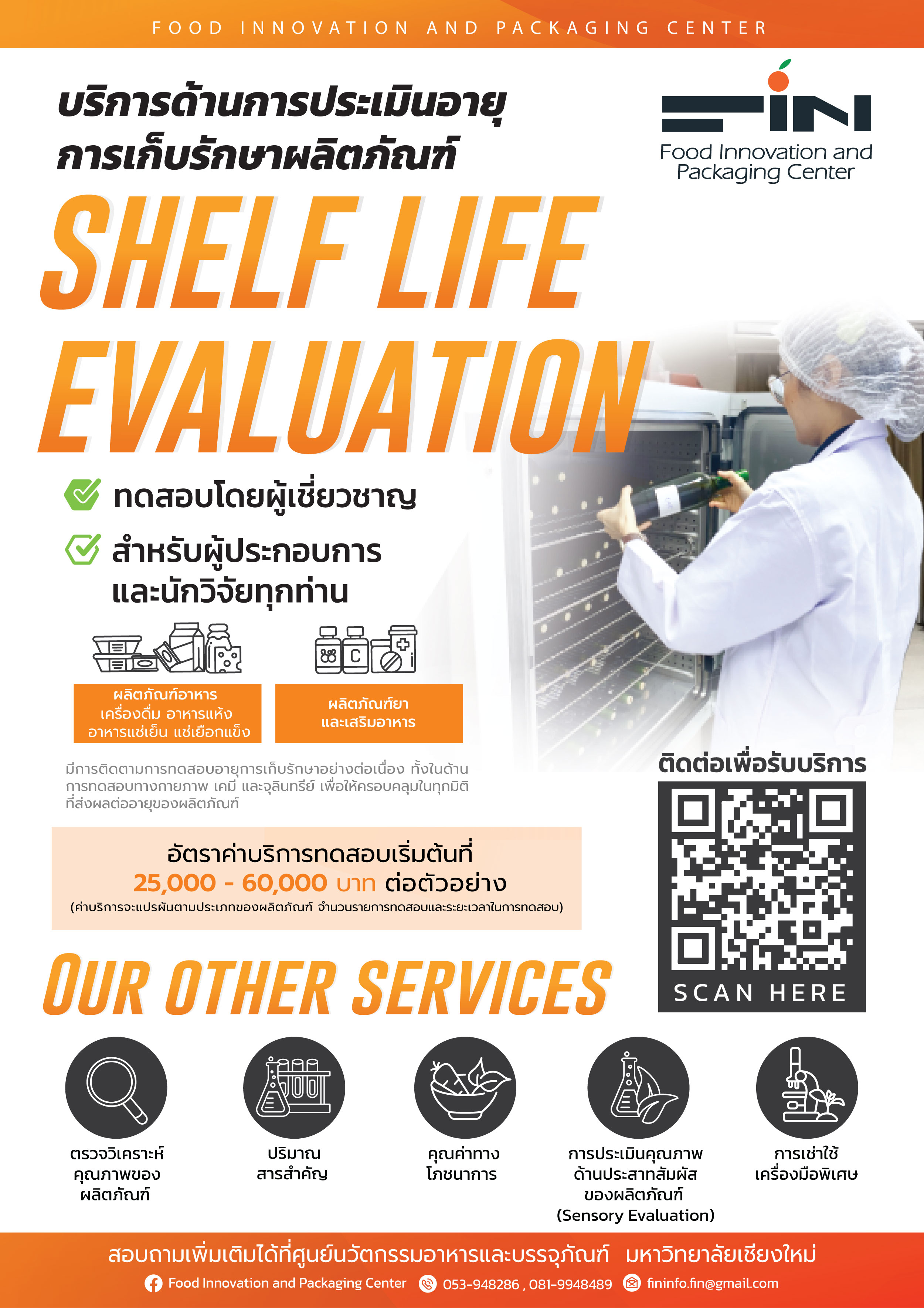 | 2 | อาหารแห้ง , เครื่องดื่ม , ผลิตภัณฑ์อาหาร , ผลิตภัณฑ์ยาและเสริมอาหาร | ขึ้นอยู่กับปริมาณในแต่ละบรรจุภัณฑ์ | อุณหภูมิ 25, 35, 45 °C | 3 – 6 เดือน | 35,000 บาท |